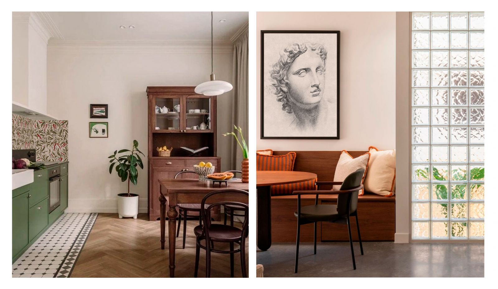 В сложных зонах (в ванной, на кухне в зоне раковины и плиты), где есть риск попадания влаги и воды, для оформления стен в винтажном стиле используют керамическую плитку. Предпочтение стоит отдавать плитке квадратной формы белого цвета или с узором. Часто используются декоративные панели. Ими декорируют нижнюю треть стены, что довольно практично, например, в прихожей. Ещё один вариант винтажной отделки – перегородки из стеклянных блоков. Они появились в конце XIX века, но особую популярность приобрели в 20-30 годах прошлого столетия. На сегодняшний день стеклянные блоки возвращаются в наши пространства, даря им «изюминку» и наполняя светом.