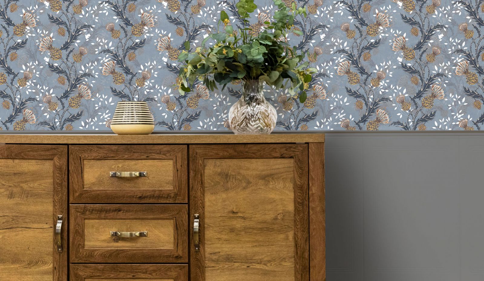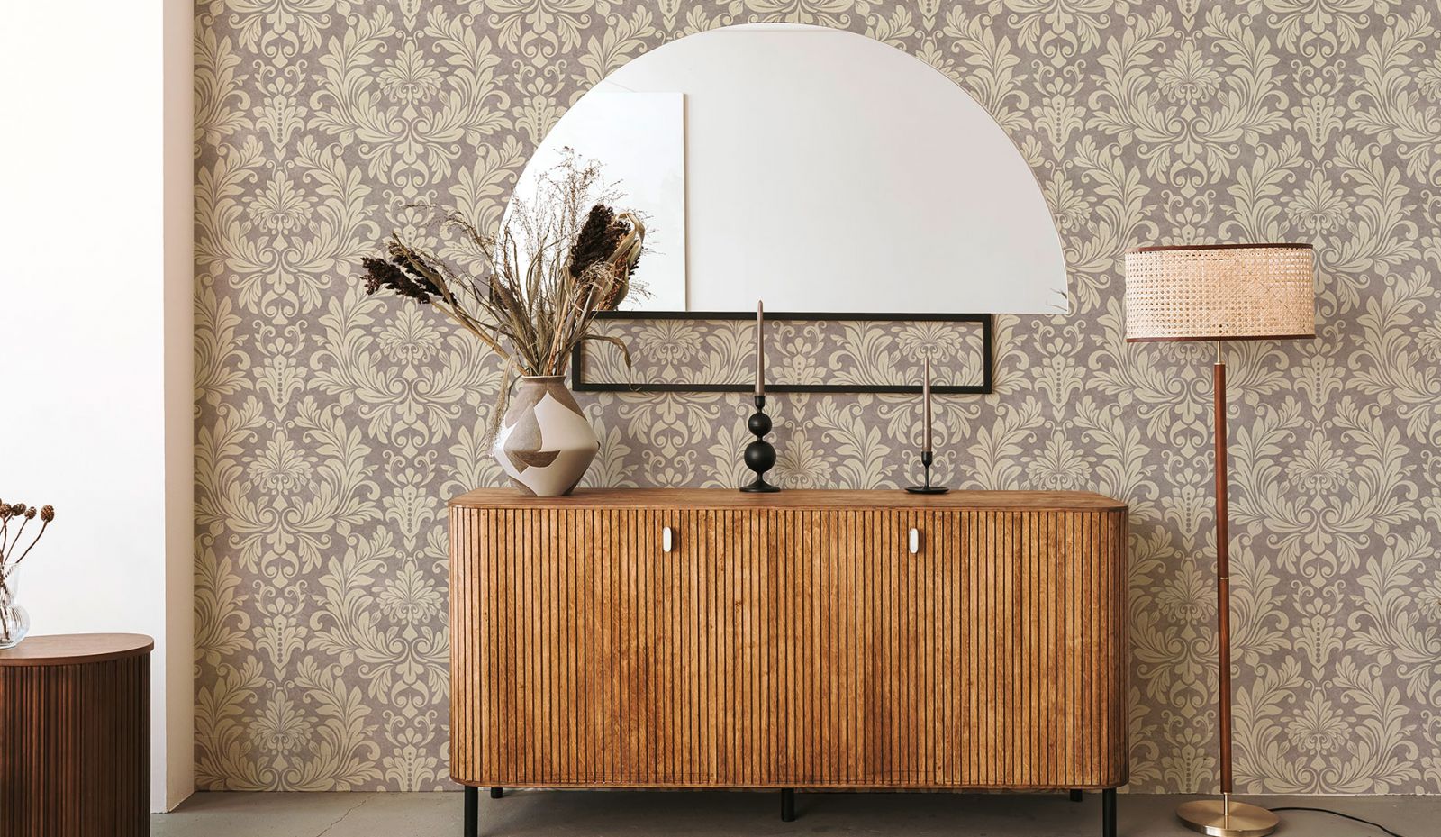 Стены – первое, на что мы обращаем внимание, зайдя в помещение. В винтажном интерьере они могут быть как нейтральными (матовая покраска в светлых пастельных тонах), так и стилизованные. В случае, если вы решили оформить стены стильными обоями в стиле винтаж, стоит обратить внимание на дизайнерские коллекции компании «ОРТОГРАФ»: мифические создания, как на старинных средневековых гобеленах, ремесленные мотивы, отголоски славянских былин и преданий, изящные растительные узоры и дамаски в сочетании с лаконичной геометрией.  Эти винтажные коллекции придадут вашим стенам утончённый стиль, особый шарм и элегантность. Ещё одна особенность этих дизайнерских обоев в том, что их можно выполнить единым полотном, совершенно без стыков. Вам не придётся часами подгонять полотна по узору и делать аккуратный шов.