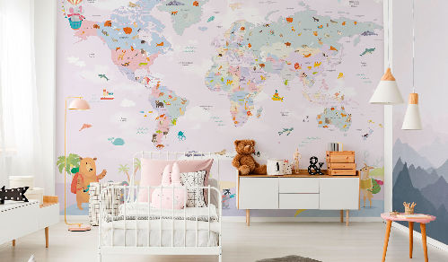 Вы обязательно подружитесь с этими забавными героями. Милые зверюшки живут в своем маленьком городе, в лесу, путешествуют на воздушных шарах и велосипедах, самолетах. Также сюда входят новые детские карты мира. Все дизайны выполнены в нескольких цветовых вариациях, чтобы вы могли подобрать гармоничный вариант для вашего проекта комнаты.