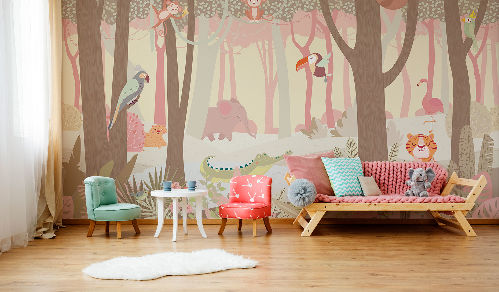 Вы обязательно подружитесь с этими забавными героями. Милые зверюшки живут в своем маленьком городе, в лесу, путешествуют на воздушных шарах и велосипедах, самолетах. Также сюда входят новые детские карты мира. Все дизайны выполнены в нескольких цветовых вариациях, чтобы вы могли подобрать гармоничный вариант для вашего проекта комнаты.