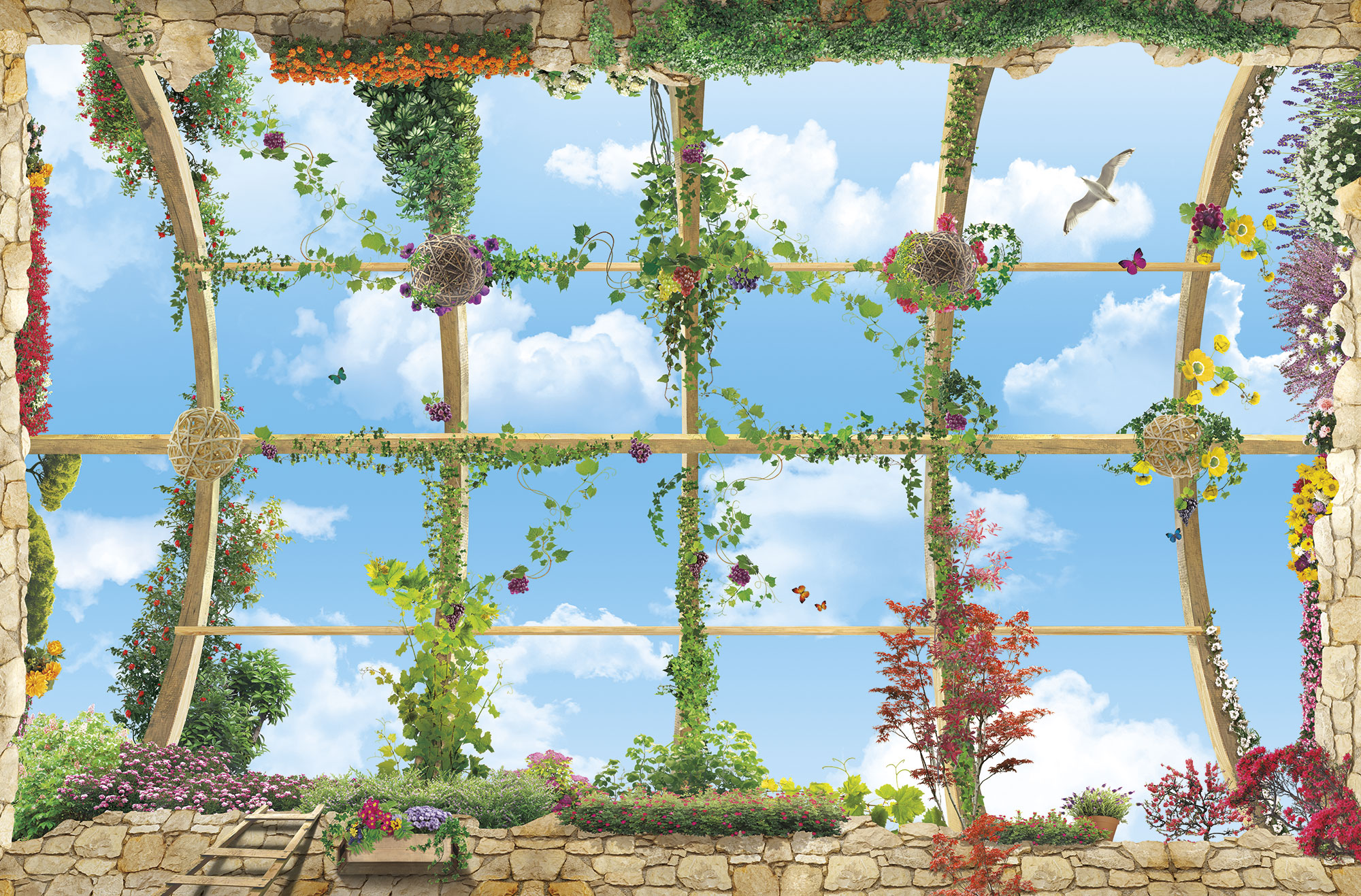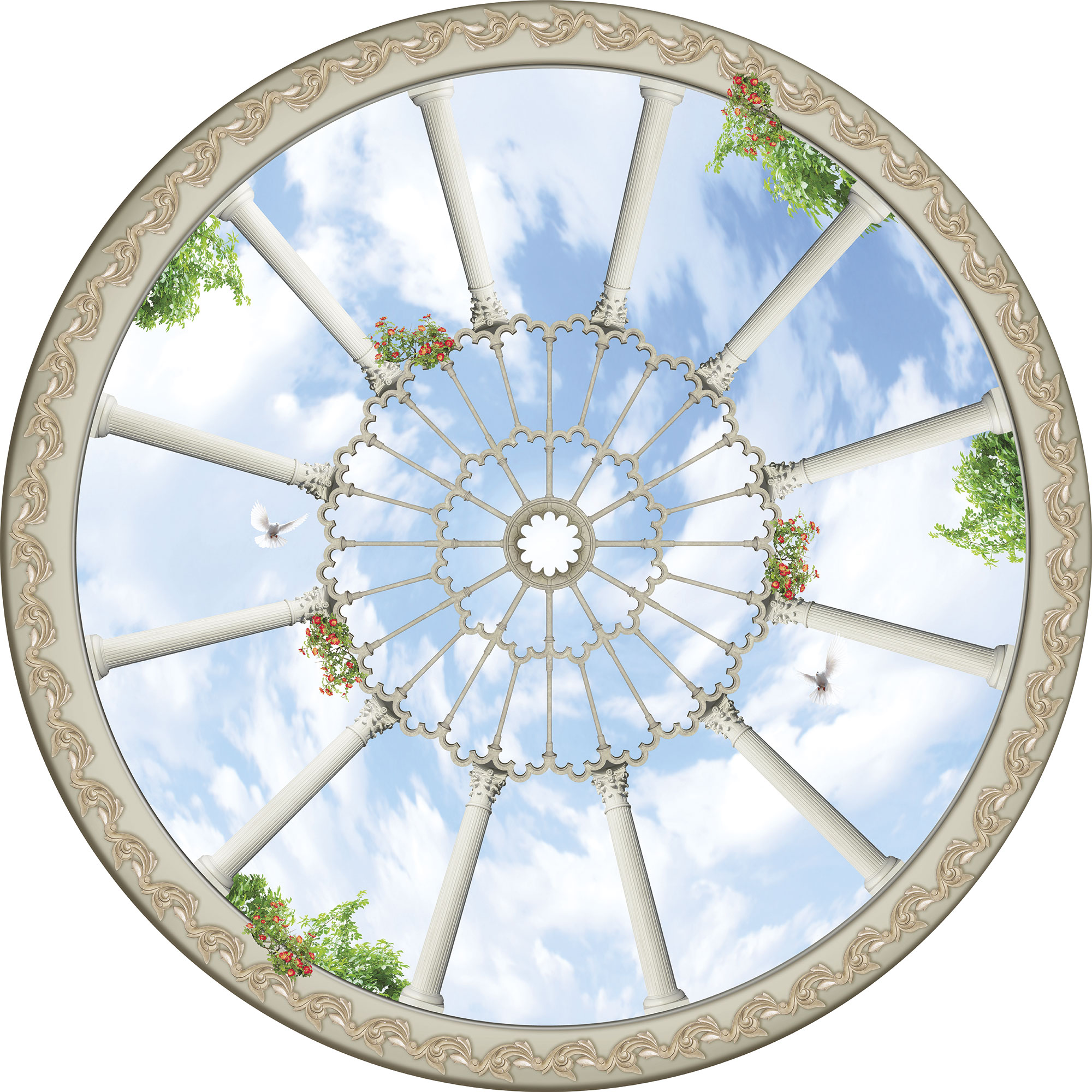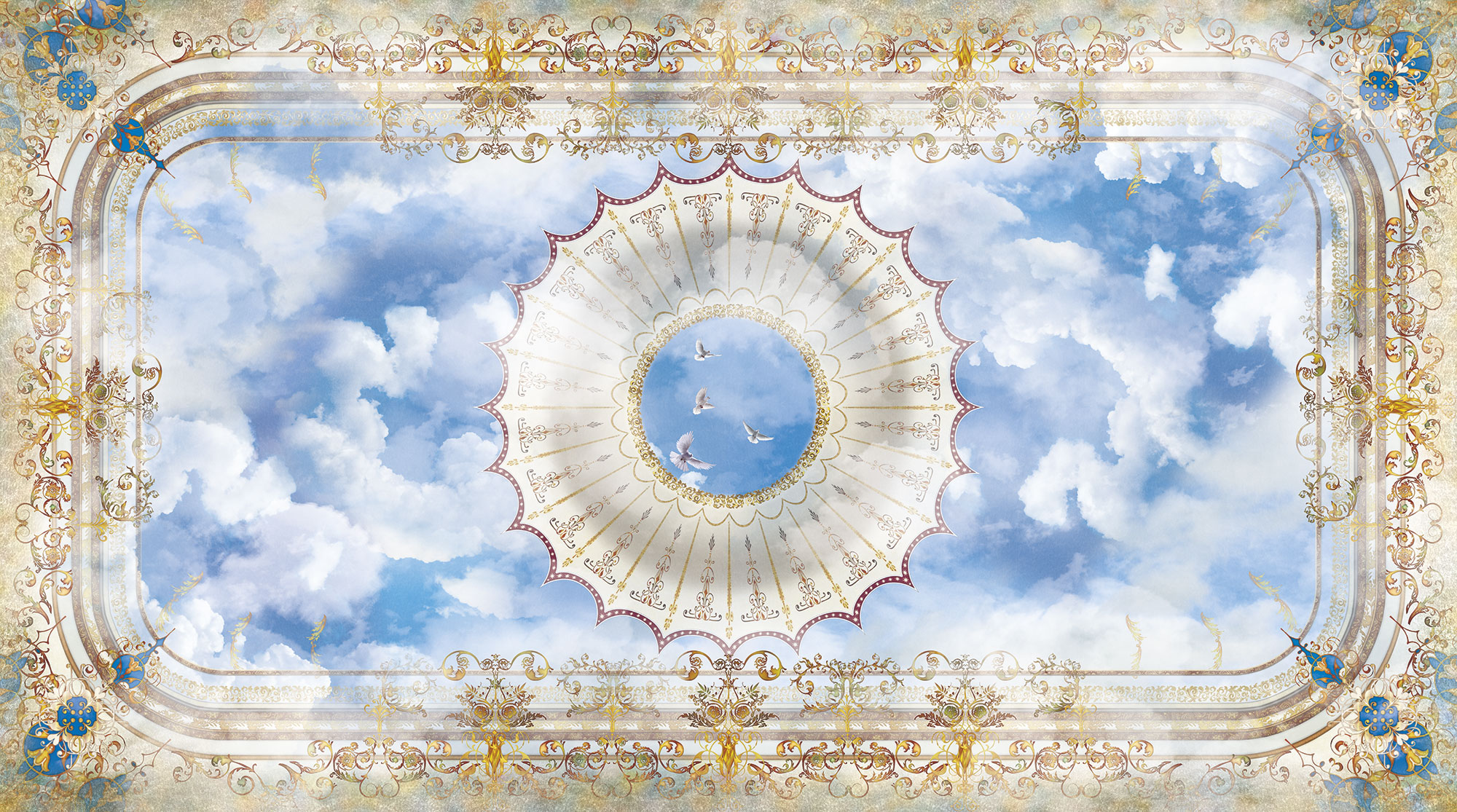 Потолок с арками и птицами